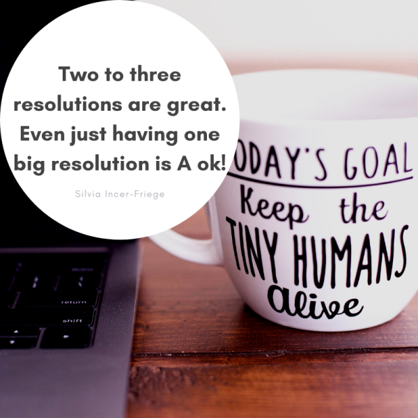 A big reason why my resolutions would fall through was because I wasn’t focused. I wanted to do so much all at once. As any parent would know, kids don’t leave us parents with much time to accomplish too much. So the key is to keep it simple, not in the content of your list like “read more books”, but in the length of your list. Keep your list short. Two to three resolutions are great. Even just having one big resolution is A ok!